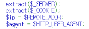 extract()은 값을 변수화시켜주는 함수인데 이를 이용하여 $_SERVER 와 $_COOKIE의 값을 변수로 바꿔주었다.