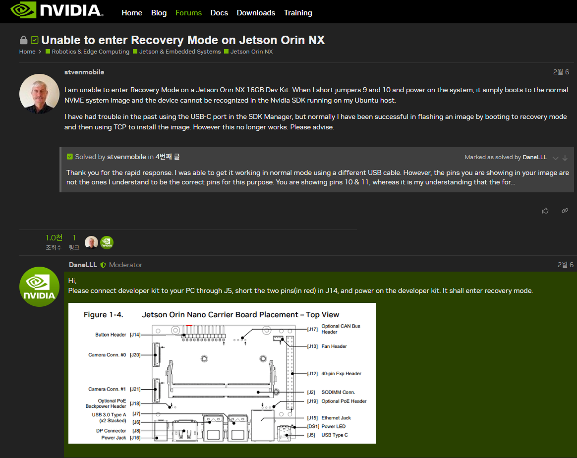 Jetson orin nx 다운그레이드하는 방법, Recovery mode 진입 방법 본문