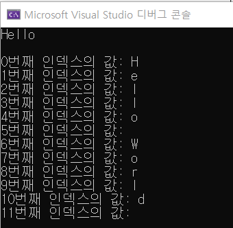 | 값 | H | e | l | l | o | W | o | r | l | d | 0 |