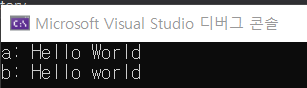 이를 출력해보면 둘 다 Hello world라는 문장을 출력합니다.