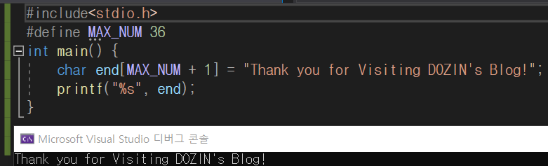 그런데 이때 주의할 점은 변수의 크기는 매크로 상수+1을 해야 한다는 사실입니다.