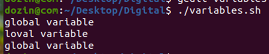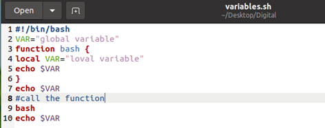다음 bash함수를 호출했을 때는 함수 안에서만 작용하는 “local~”이 출력되고