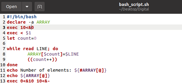 위 예제는 파일 입출력을 다룬 예제로 bash_script.sh에서 bash.txt에서 값을 읽어
