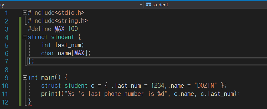 이 또한 한 구조체로 여러 구조체를 만들 때 구조체 배열을 만들지 않고 아래와 같이