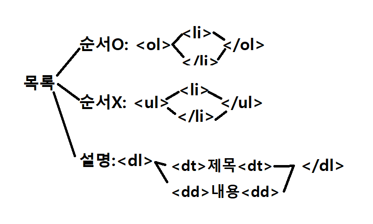 | 이미지 | <img src="경로" alt="대체 텍스트> |