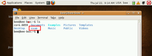 아래는 참고로 exam 디렉터리가 잘 만들어졌는지 bee-box에서 확인한 화면이다.
