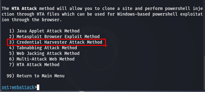 2) Credential Harvester Attack Method