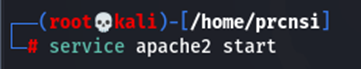 먼저 칼리 리눅스에 들어가서 Apache2 서버를 켠다.