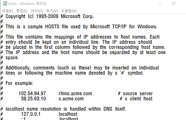 (hosts 파일과 관련하여 본 포스트의 하단에 추가 정보를 첨부해 두었다)