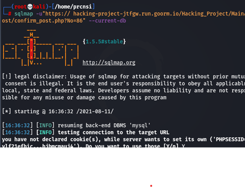 sqlmap -u [get으로 받는 페이지의 URL]” –current-db