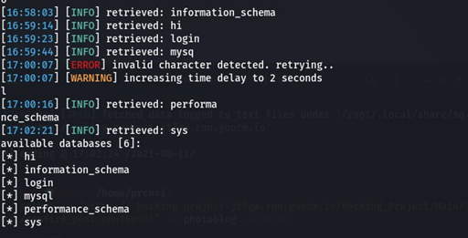 +sqlmap -u [get 사용하는 페이지의 url] --dbs으로 모든 db 확인 가능