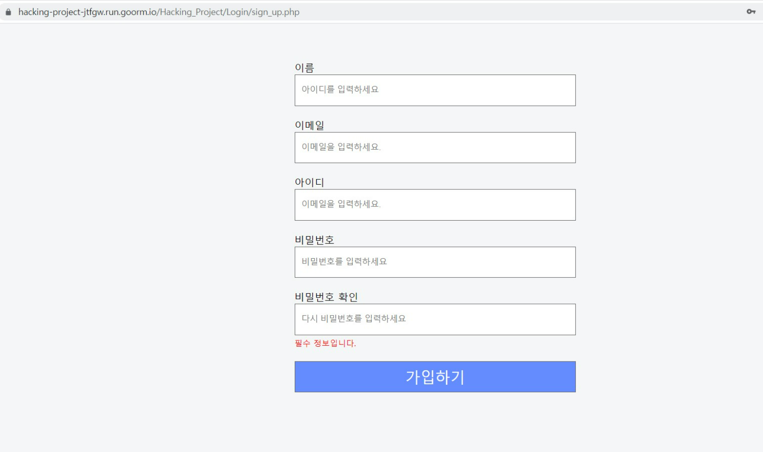 웹 해킹 프로젝트는 팀별로 웹페이지를 만들고 서로의 웹페이지의 정보를 빼오는 모의해킹을 실습한 프로젝트입니다.