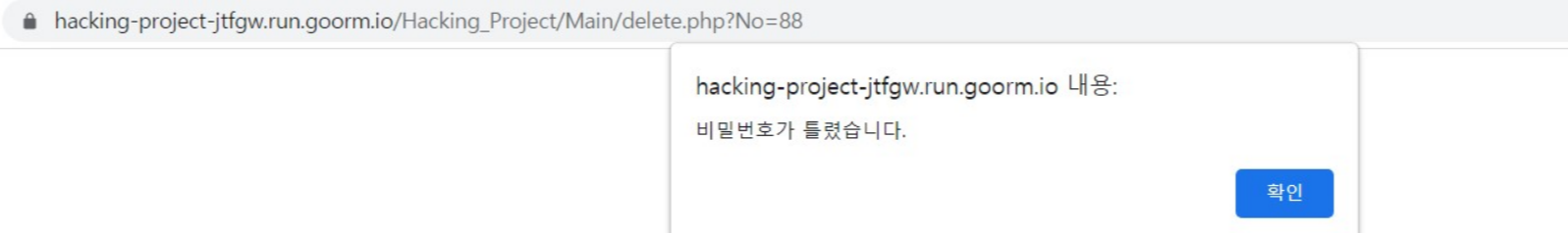 조금 신경 쓴 부분은 게시글을 삭제할 때 비밀번호를 확인하는 과정에서 JS alert로 입력받아서 다음 페이지로 넘기고(php) DB에서 불러와서 확인하고 삭제 alert를 띄운 것이다.