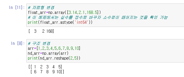 | 구조 변경 | 변수.reshape(행,열)로 변경 |