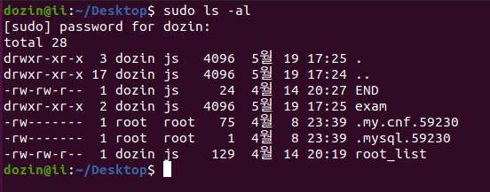 두 번째는 sudo명령어를 통해서 일시적으로 루트 계정의 권한을 갖는 것입니다.