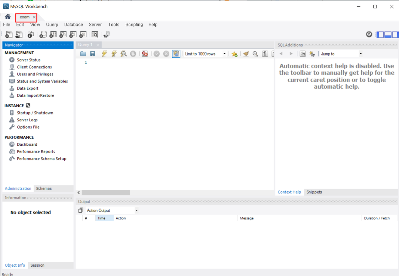 그러면 아래와 같이 방금 연결한 Connection이름이 파일명처럼 뜨면서 에디터의 시작 화면이 나옵니다.